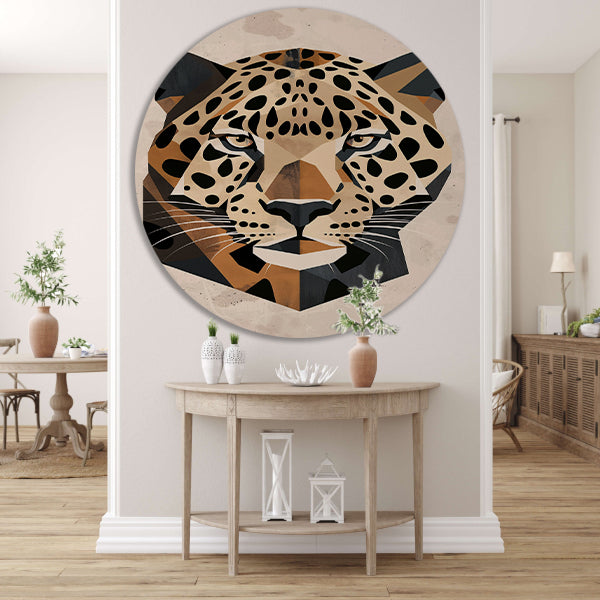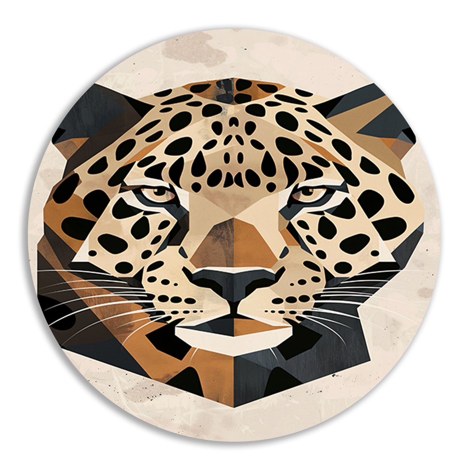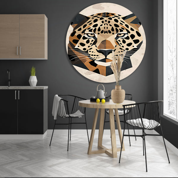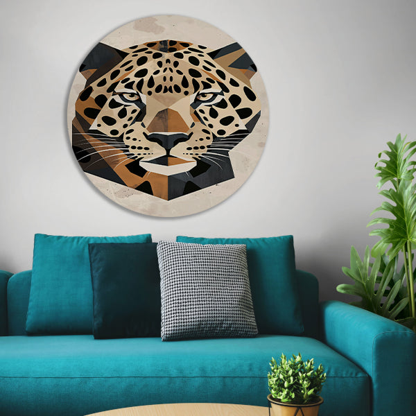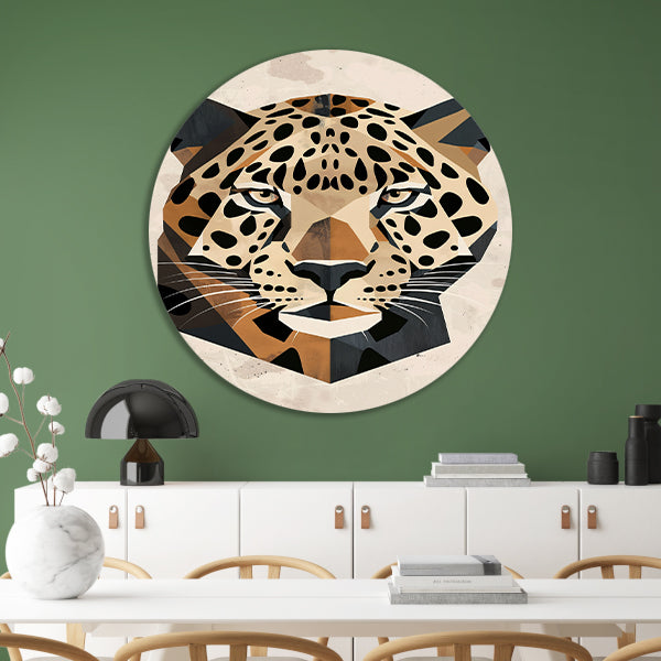 Geometrisch Portret van een Luipaard in Kleur aluminium muurcirkel