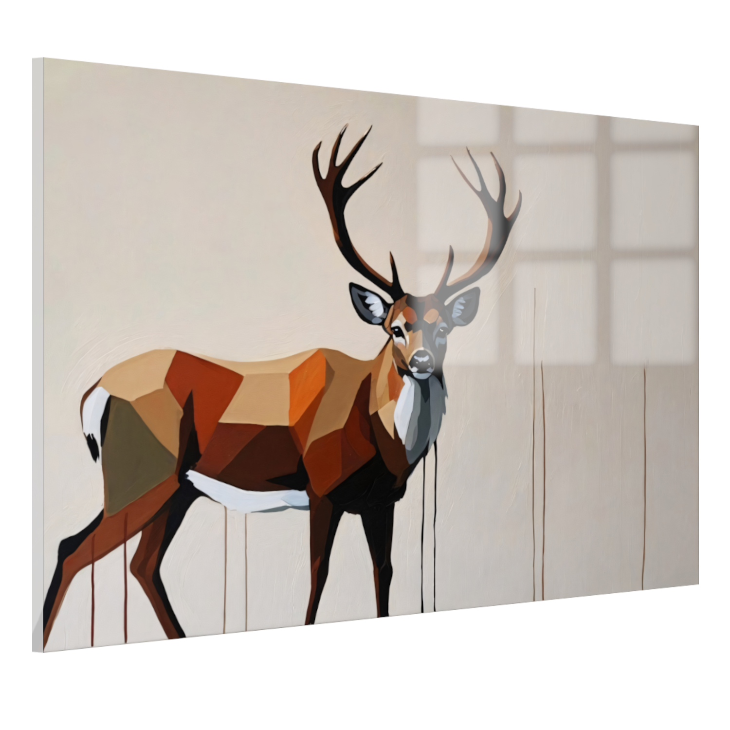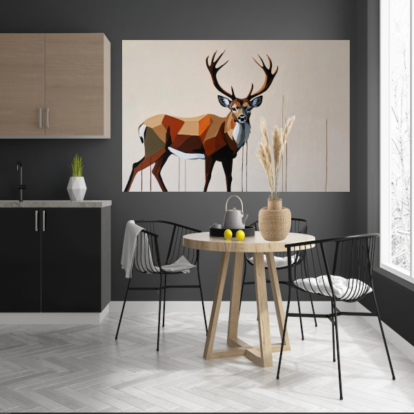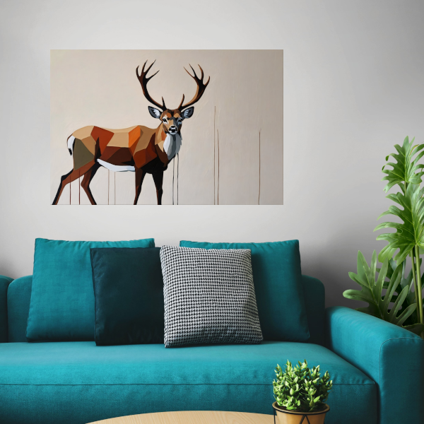 Breng de schoonheid en kracht van de natuur in huis met dit prachtige geometrische portret van een majestueus hert. Perfect voor liefhebbers van dieren en moderne kunst, dit kunstwerk zal zeker een eyecatcher zijn in elke kamer. Voeg dit unieke kunstwerk toe aan uw collectie en geniet van de elegante uitstraling die het met zich meebrengt.