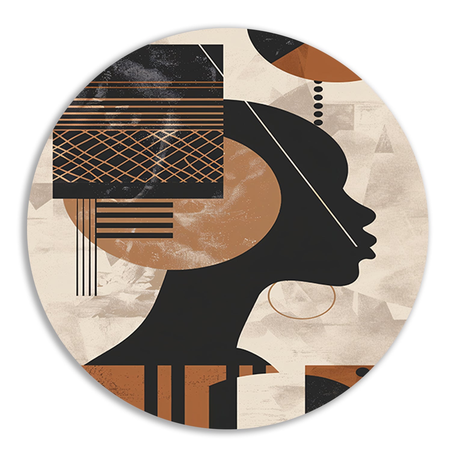 Geometrisch Silhouet in Aardetinten met Goud aluminium muurcirkel