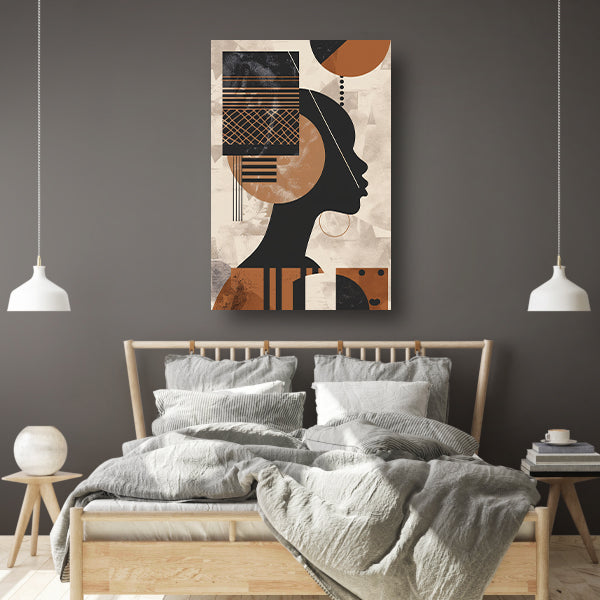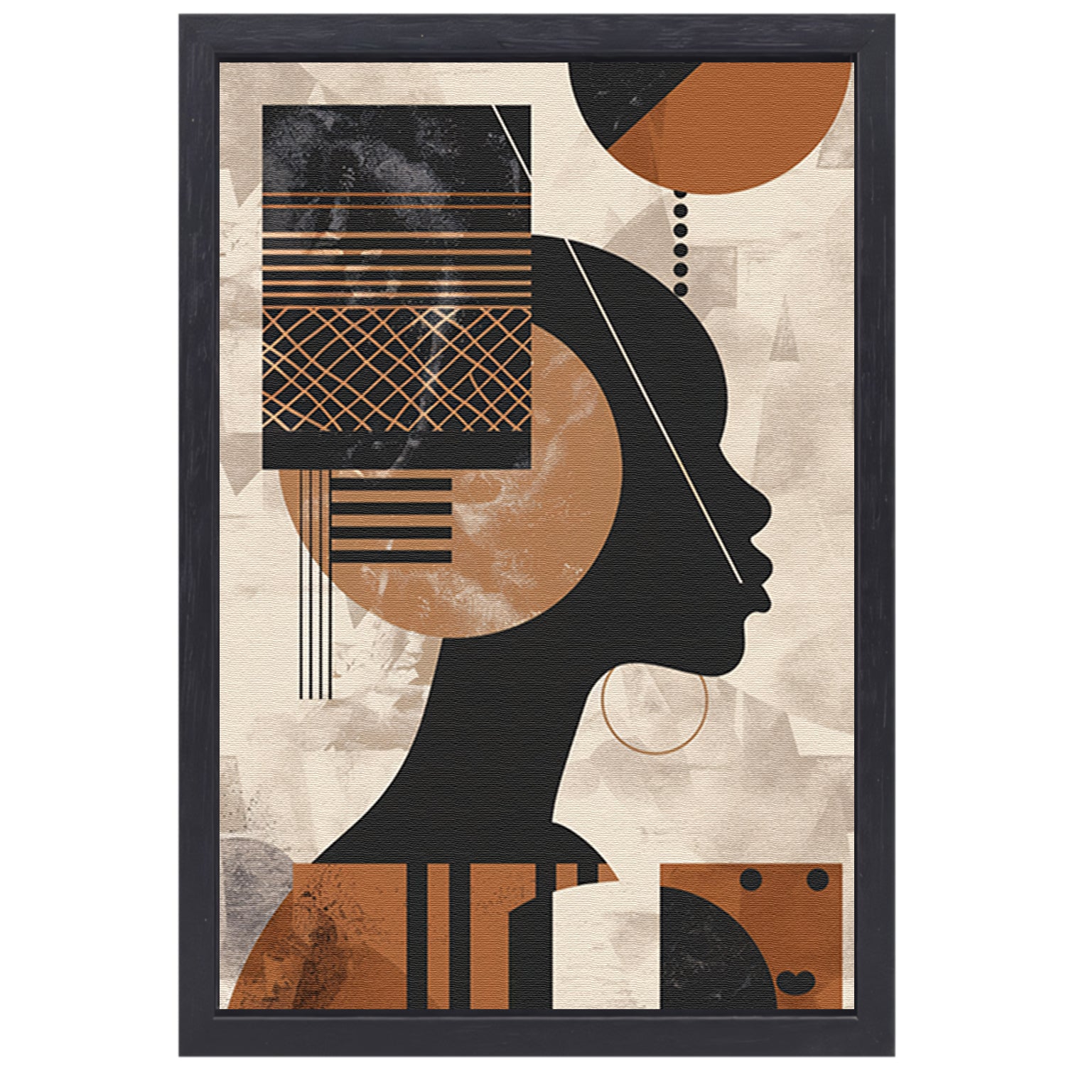 Geometrisch Silhouet in Aardetinten met Goud canvas met baklijst