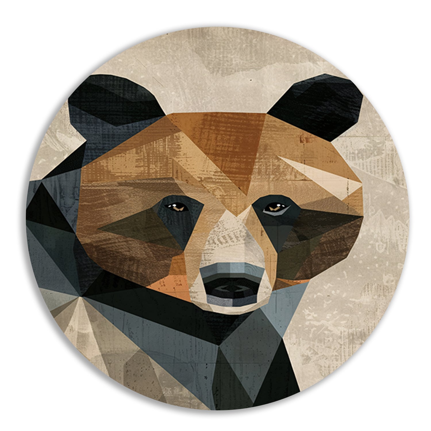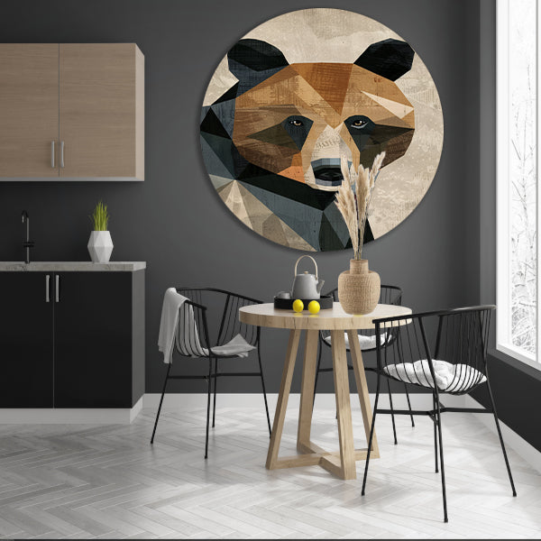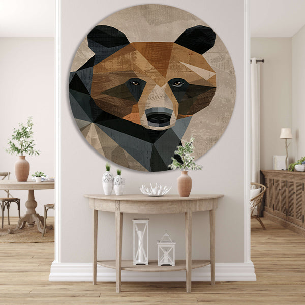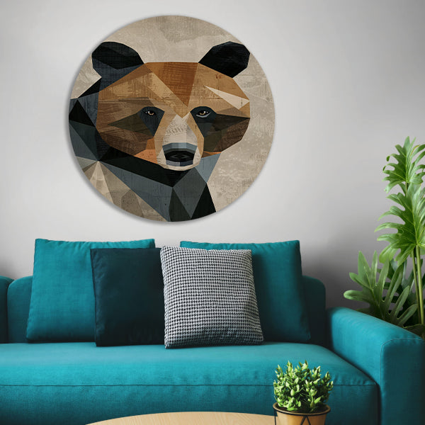 Geometrische abstracte berenkop in aardetinten aluminium muurcirkel
