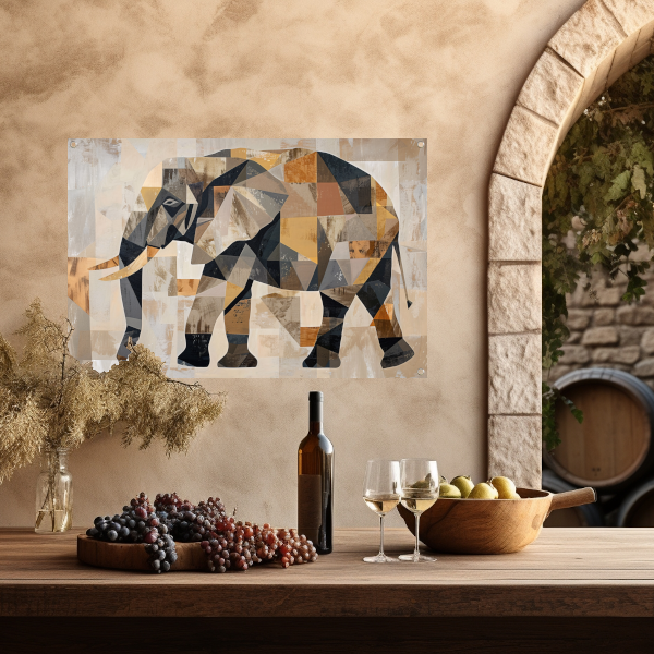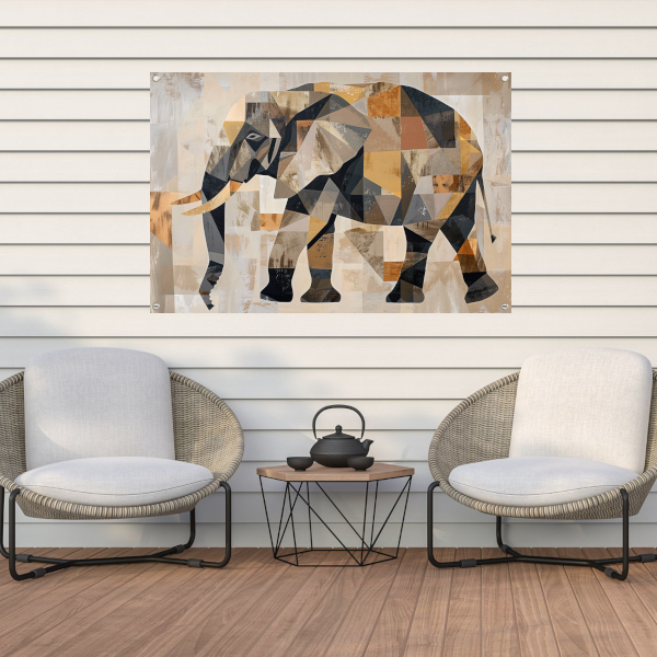 Geometrische Abstracte Olifant in Sepia tuinposter