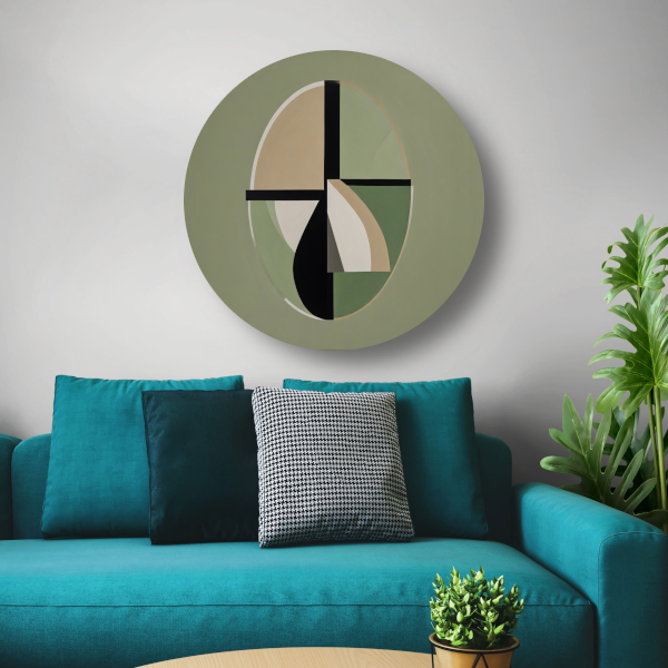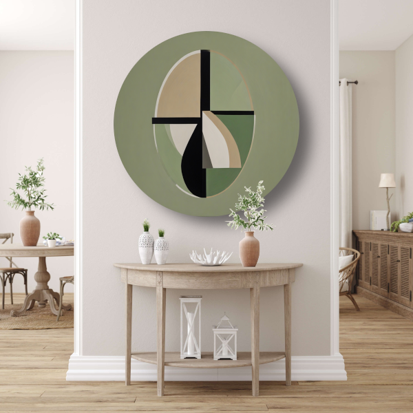 De geometrische abstractie in monochrome tinten geeft een eigentijdse uitstraling en past perfect bij elk interieur. Of u nu van een strak en modern interieur houdt of een meer traditionele stijl heeft, deze muurcirkel zal zeker de aandacht trekken.