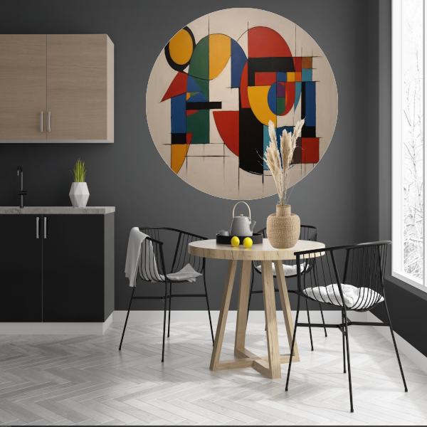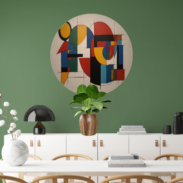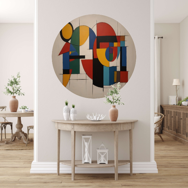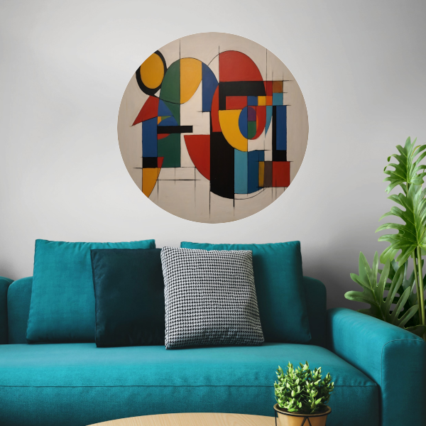 Geometrische Abstractie in Primaire Kleuren aluminium muurcirkel