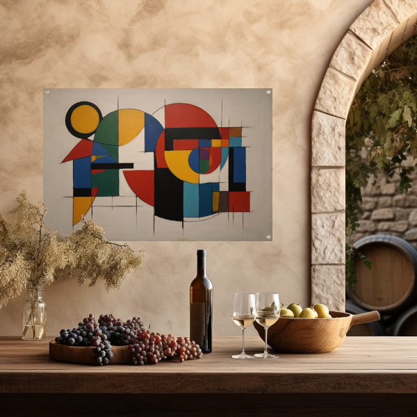 Haal nu deze prachtige Geometrische Abstractie in Primaire Kleuren tuinposter in huis en geef jouw tuin een unieke en moderne uitstraling!