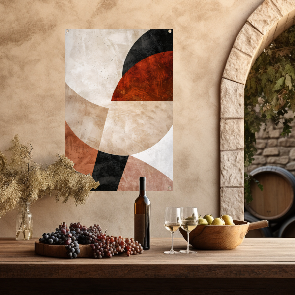 Geometrische Abstractie in Rood en Aardetinten tuinposter