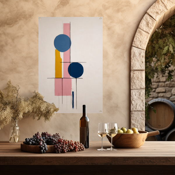 Geometrische abstractie met contrasterende kleuren tuinposter