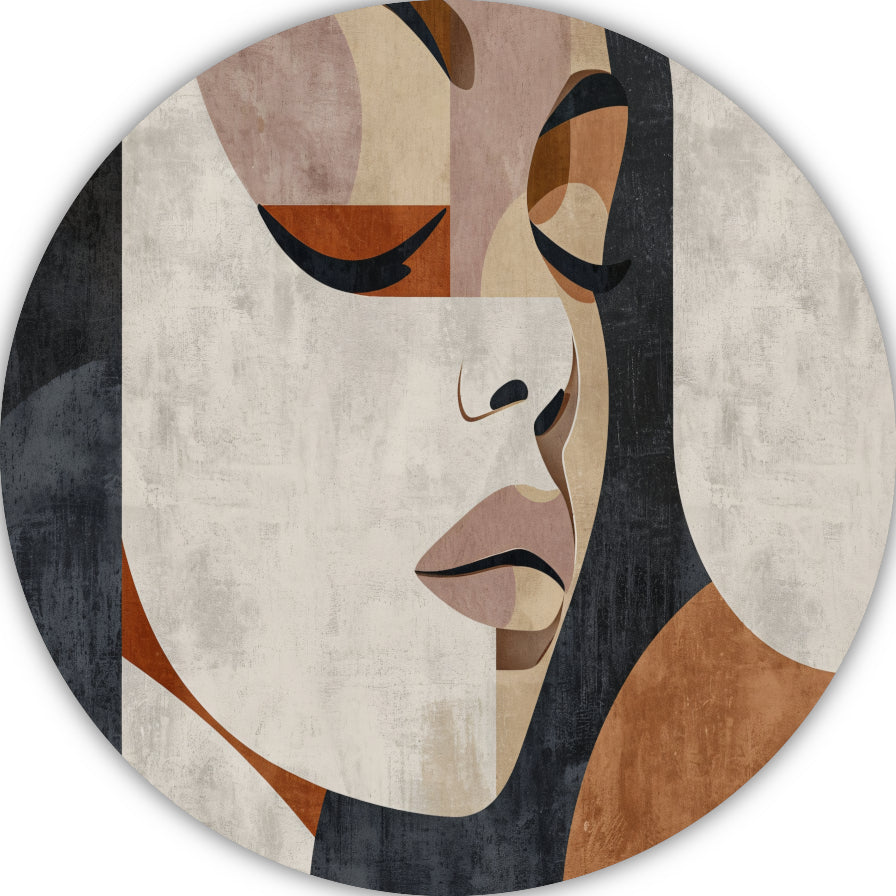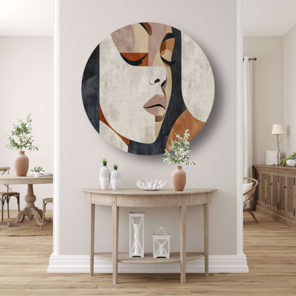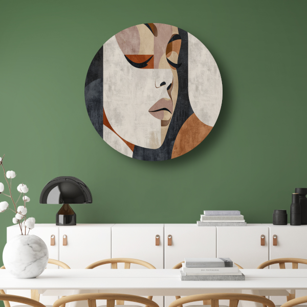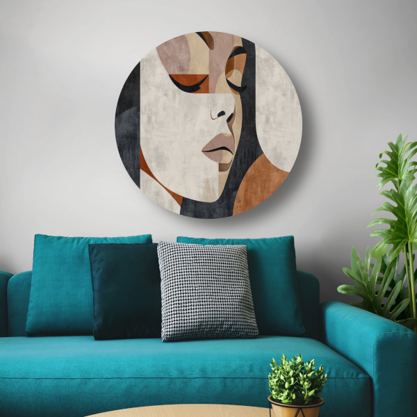 Geometrische Abstractie van een Vrouwengezicht aluminium muurcirkel