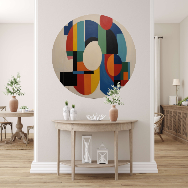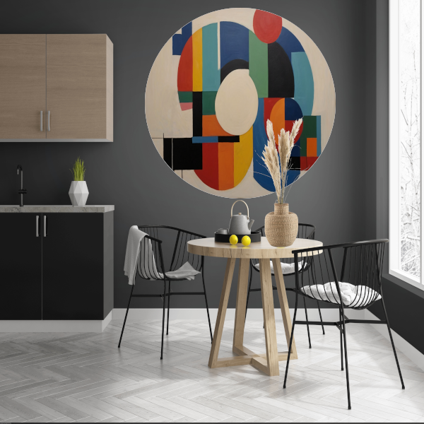 Geometrische Dans van Vorm en Kleur aluminium muurcirkel