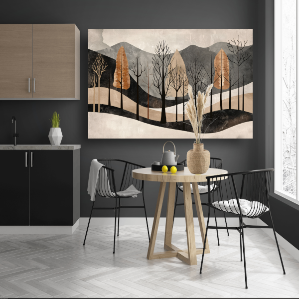 Een canvas met baklijst geeft je interieur een luxe en afgewerkte uitstraling. Onze baklijsten zijn gemaakt van hoogwaardig hout en verkrijgbaar in zwart met een zichtbare houtnerfstructuur, wat een moderne en elegante look biedt. De lijst heeft een framedikte van 3,5 cm. De montage van het canvas in de baklijst en aan de muur is eenvoudig.