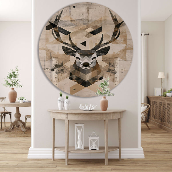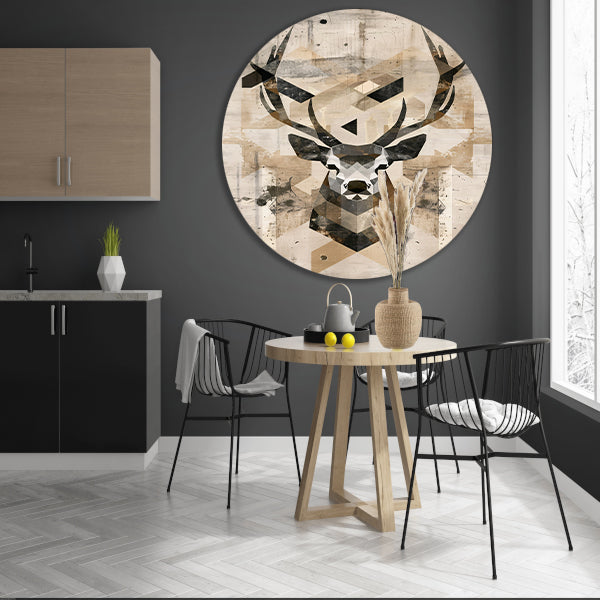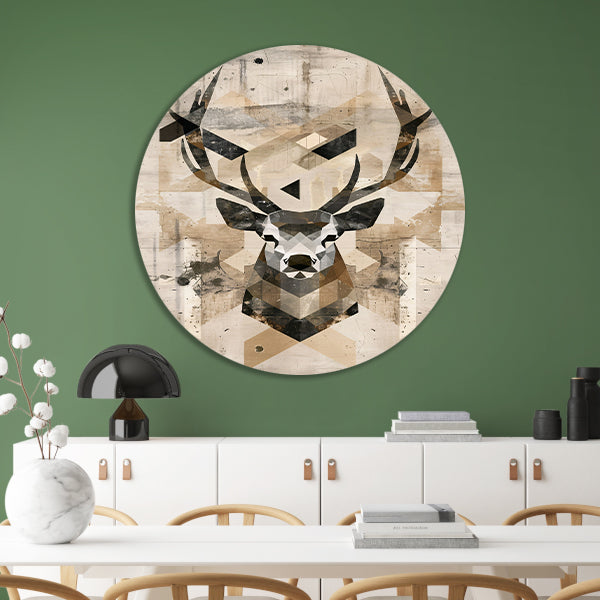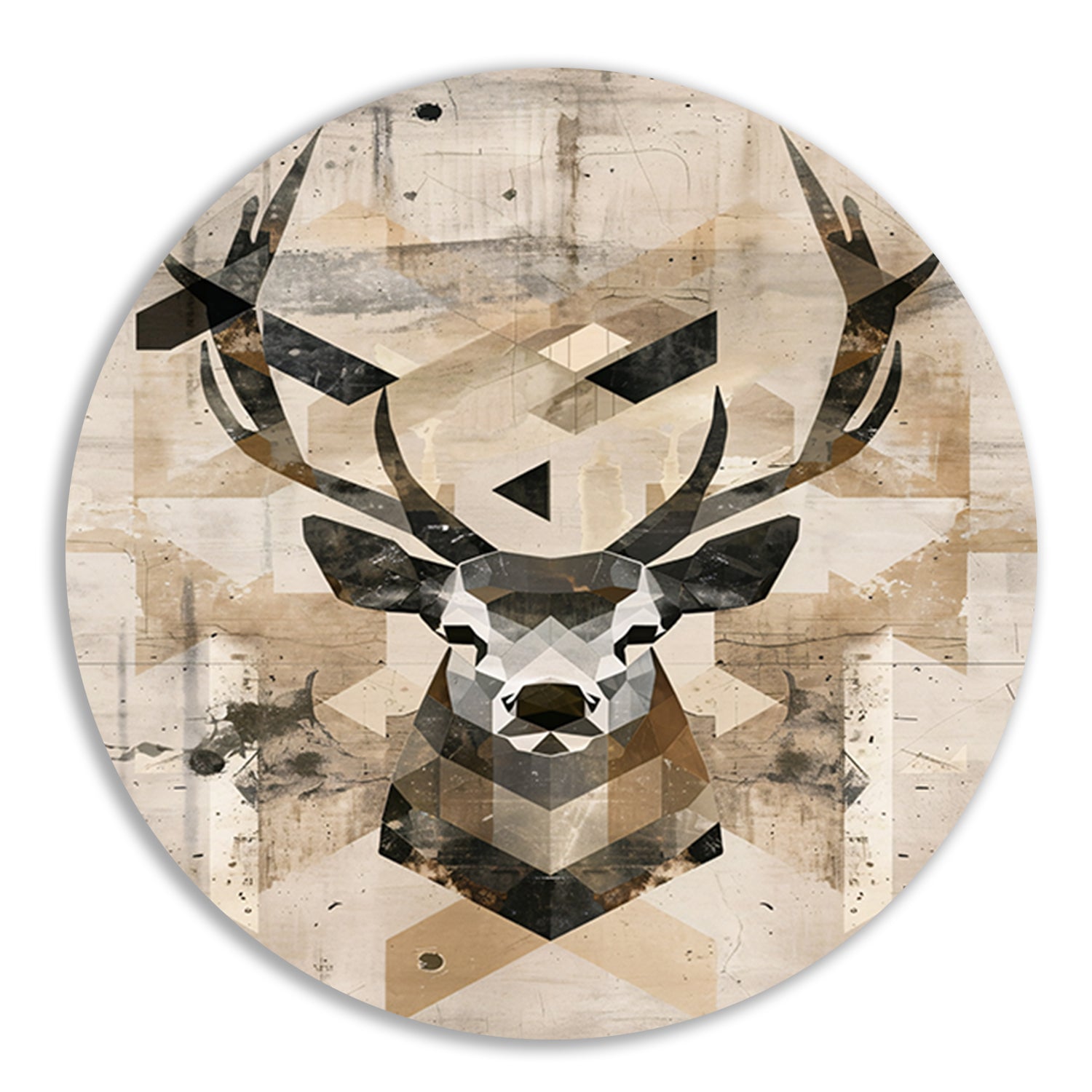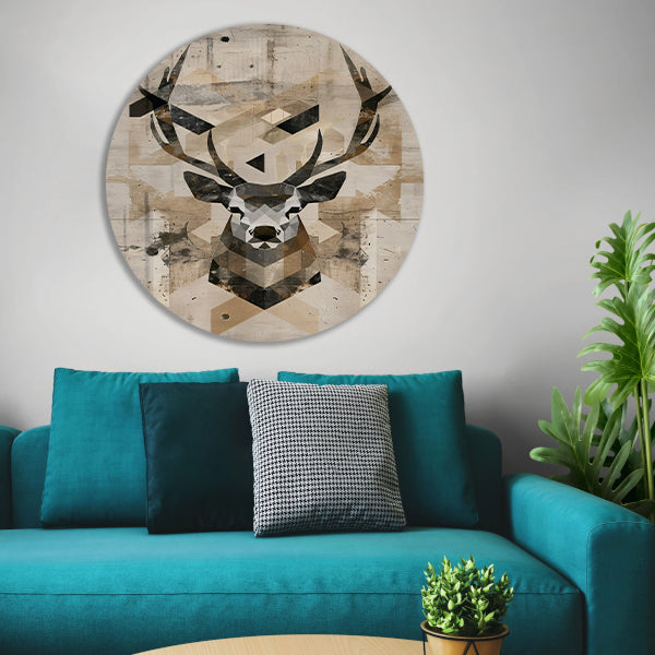 Geometrische Sepia Hertenkop in Minimalistische Stijl aluminium muurcirkel