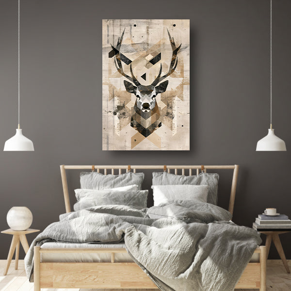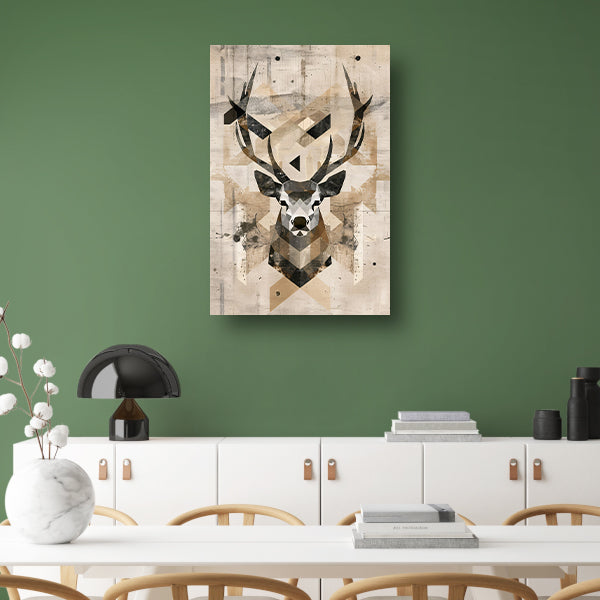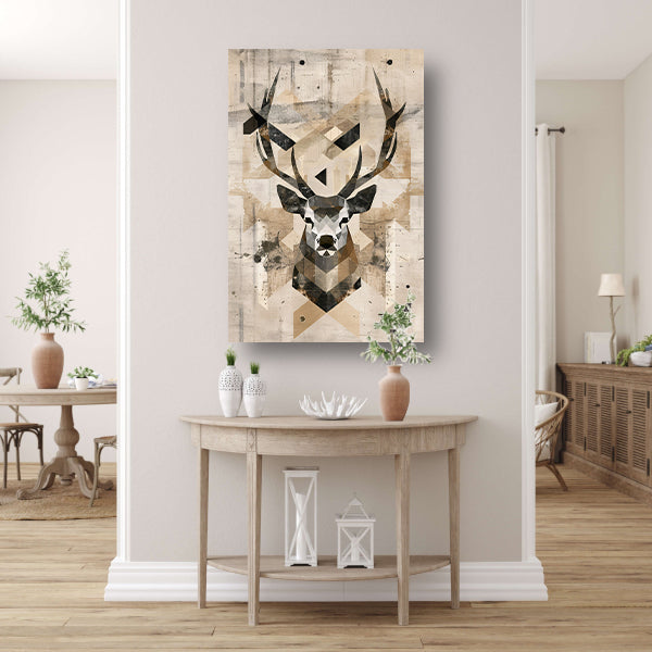Geometrische Sepia Hertenkop in Minimalistische Stijl canvas met baklijst