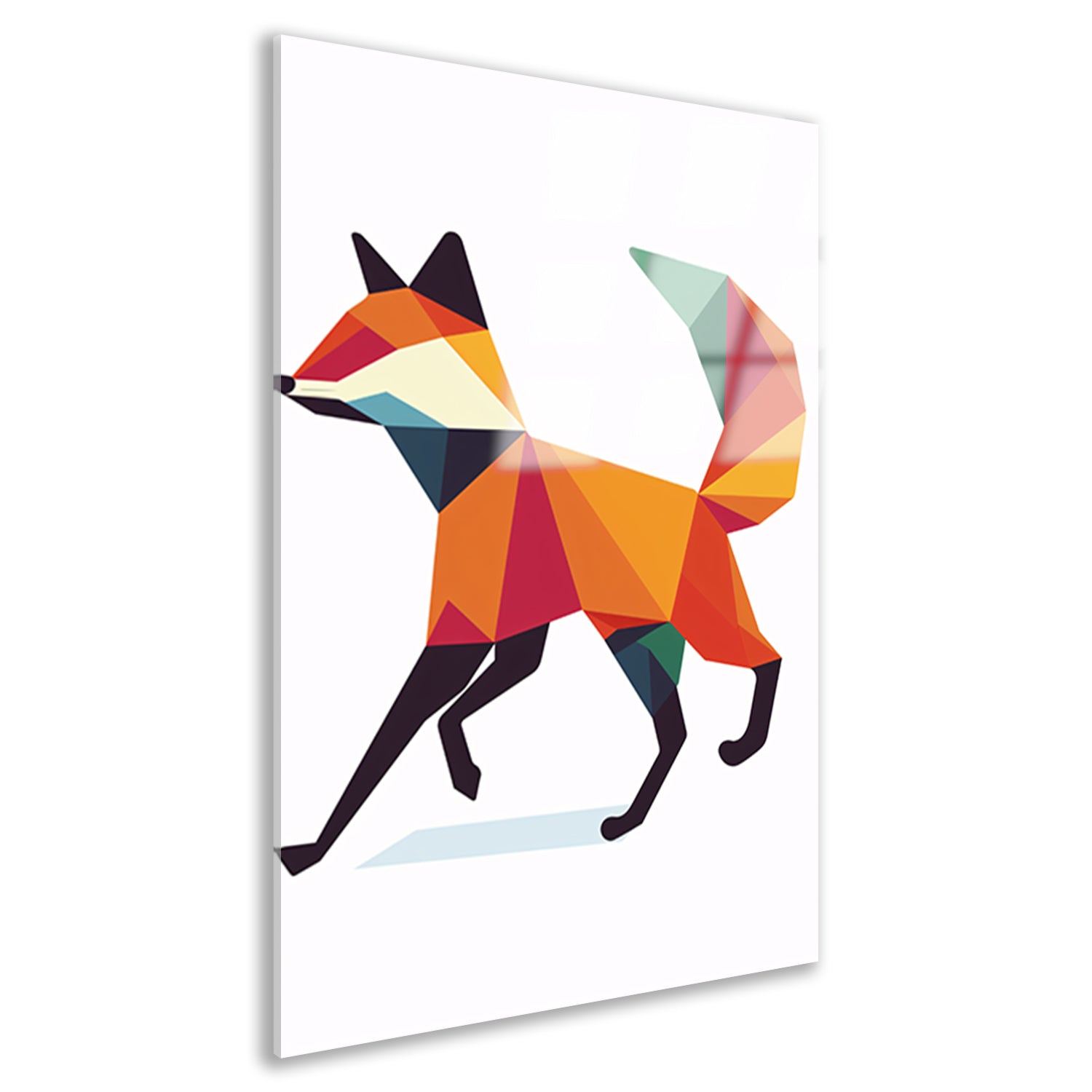 Geometrische vos in kleurrijke vlakken schilderij acrylglas