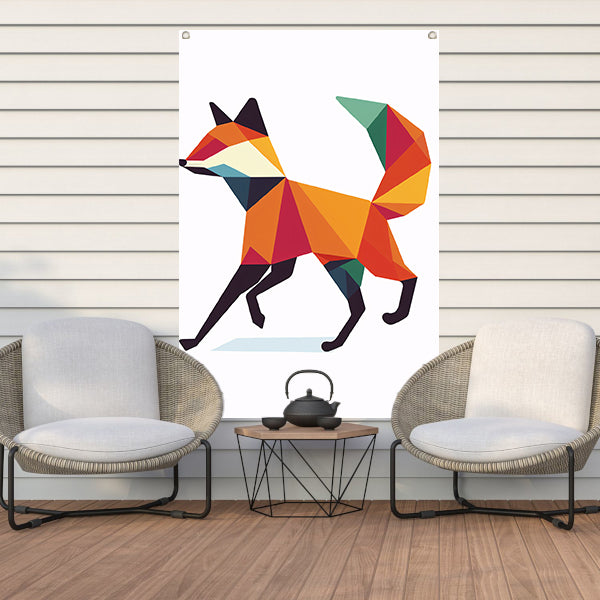 Geometrische vos in kleurrijke vlakken schilderij tuinposter