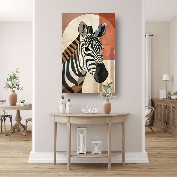 Geometrische Zebra in Aardse Tinten canvas met baklijst
