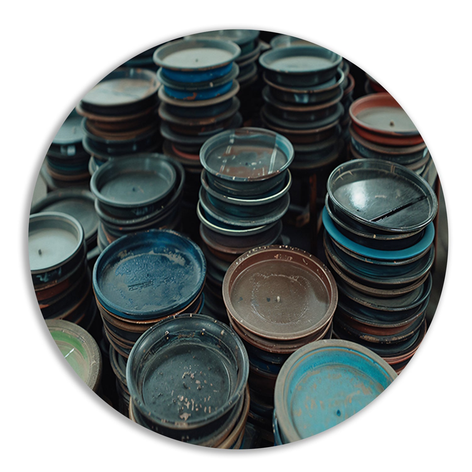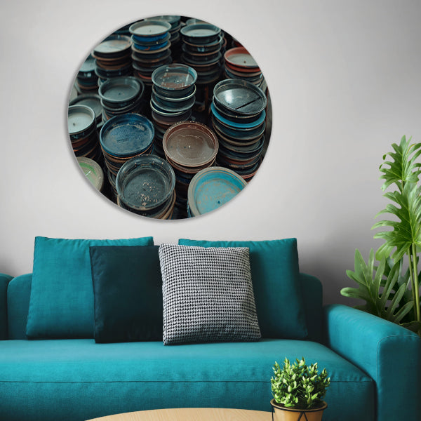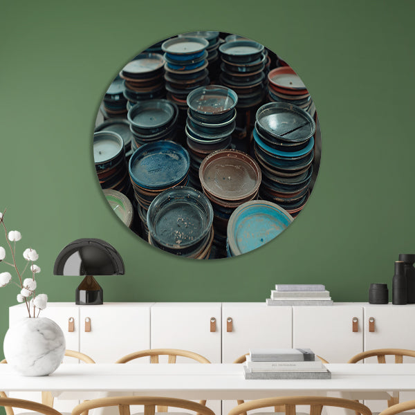 Gestapelde filmrollen in diverse kleuren aluminium muurcirkel