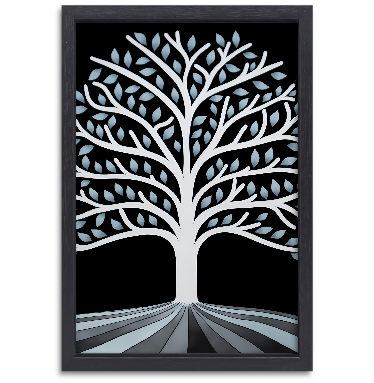 Gestileerde Boom met Perspectief en Blauwe Bladeren canvas met baklijst