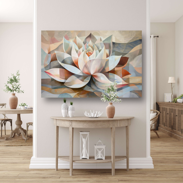 Gestileerde Kubistische Lotus in Warme Tinten acrylglas