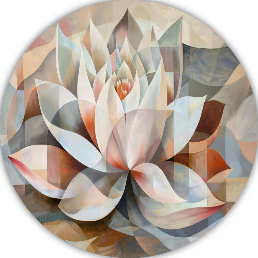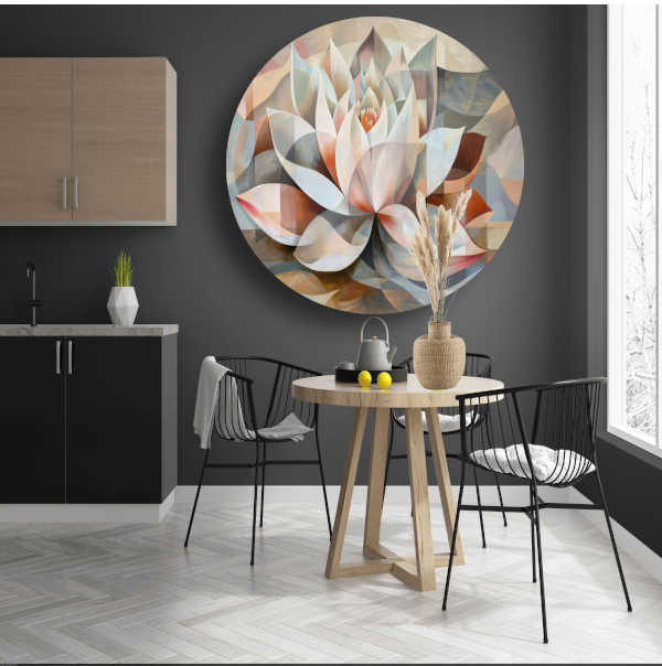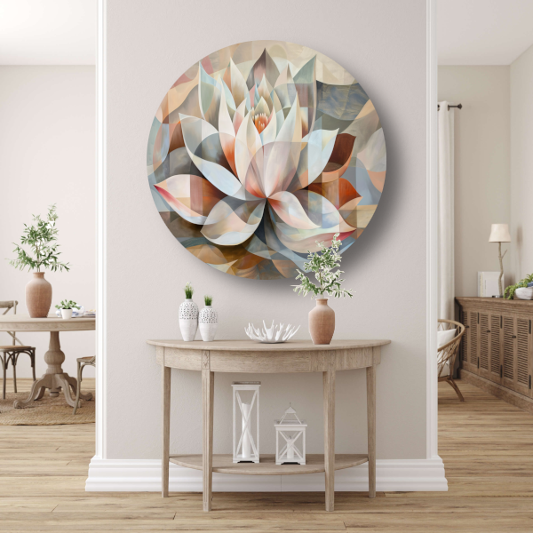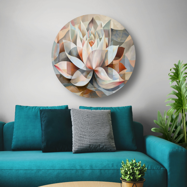 Gestileerde Kubistische Lotus in Warme Tinten aluminium muurcirkel