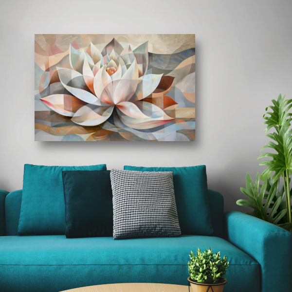 Gestileerde Kubistische Lotus in Warme Tinten poster
