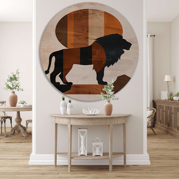 Gestileerde Leeuw op Monochrome Achtergrond aluminium muurcirkel