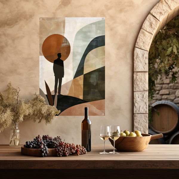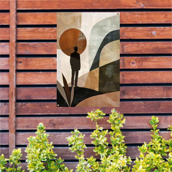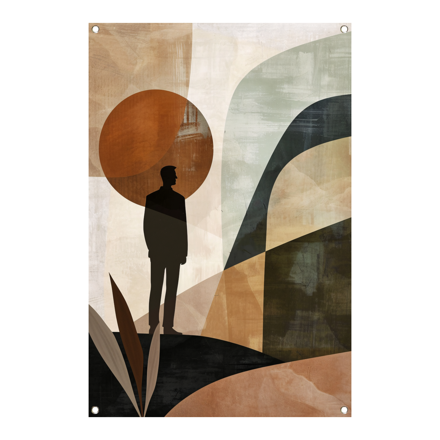 Gestileerde man tegen geometrische pastel achtergrond tuinposter
