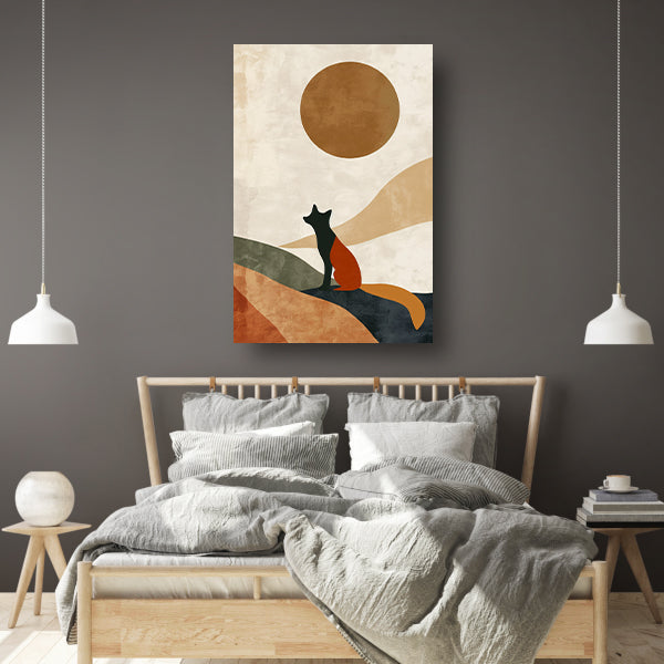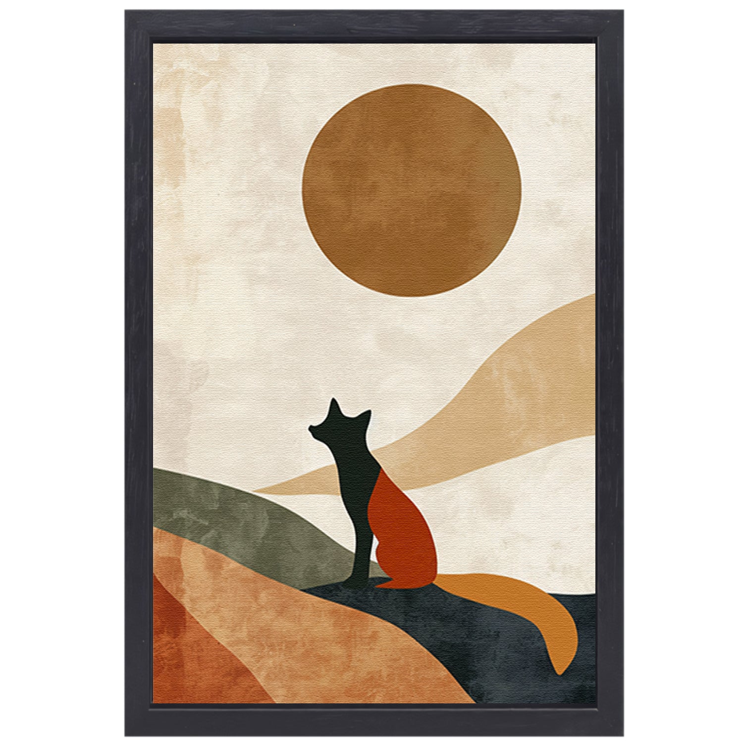Gestileerde Vos tegen Abstracte Achtergrond in Sepia canvas met baklijst