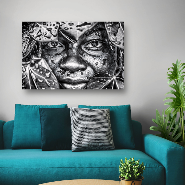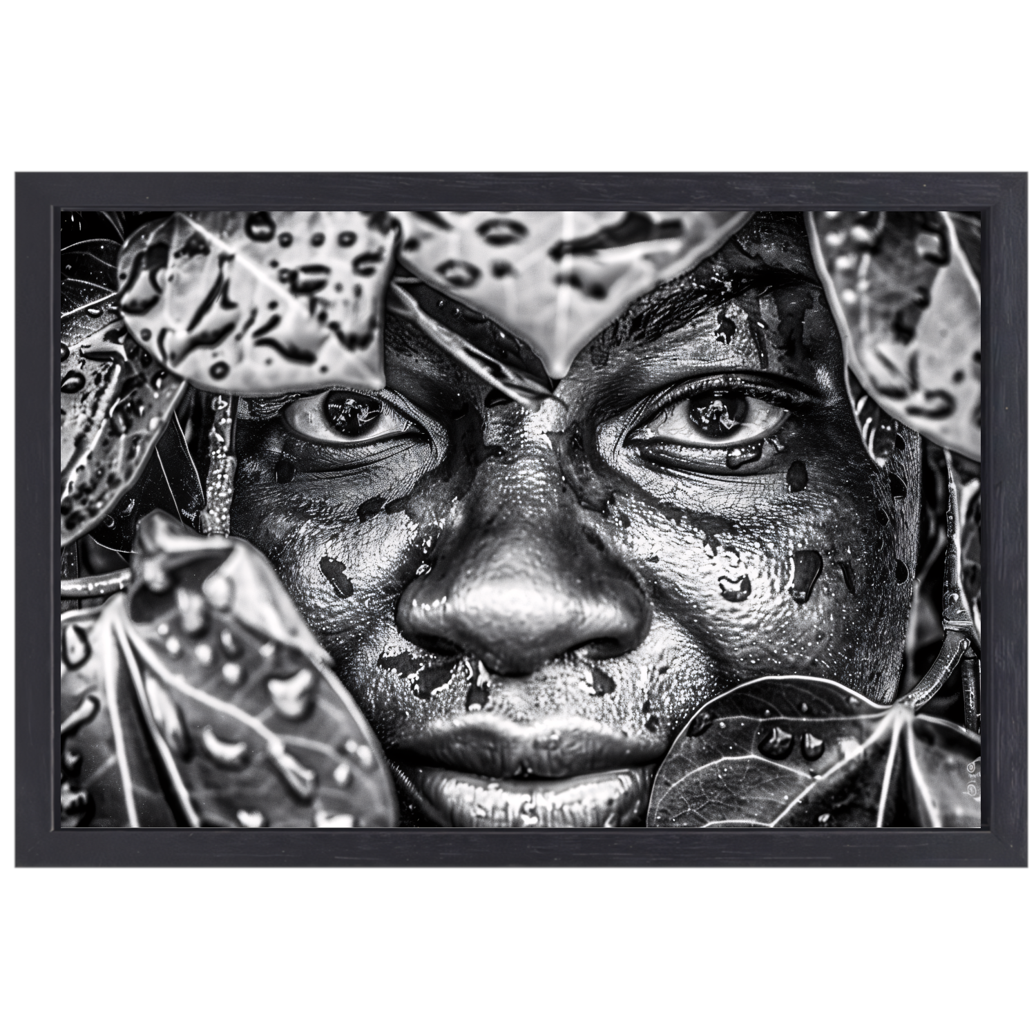 Gezicht Verborgen Tussen Natte Bladeren canvas met baklijst