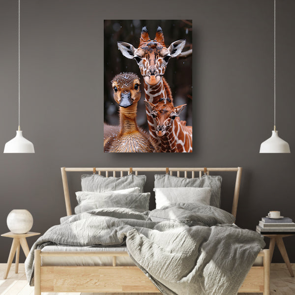Giraf en Eendje: Onverwachte Vrienden canvas