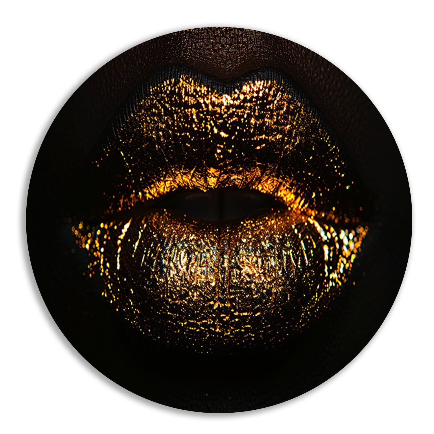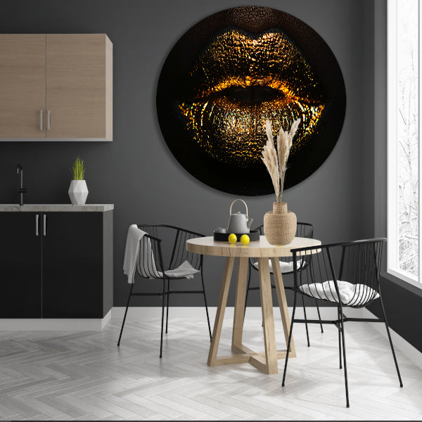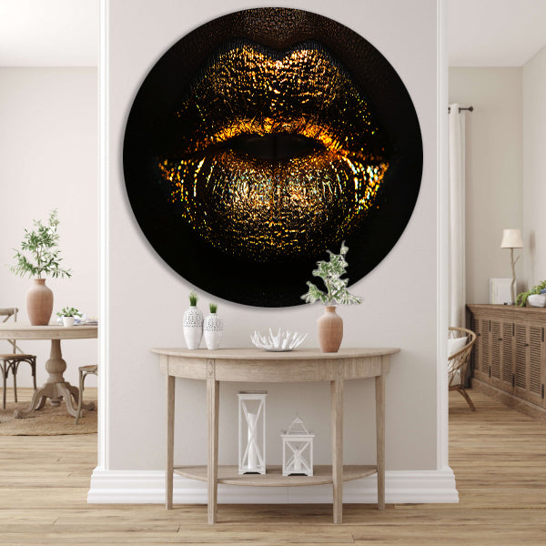 Glanzende gouden en zwarte lippen close-up forex muurcirkel