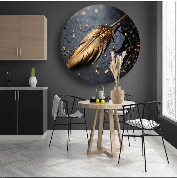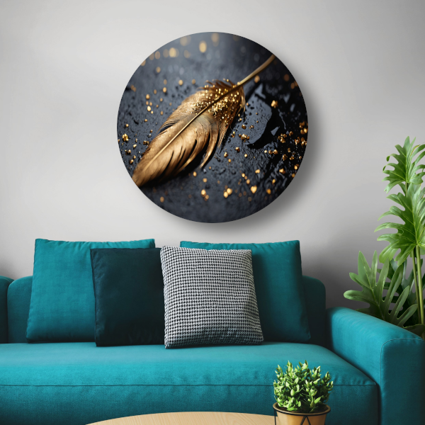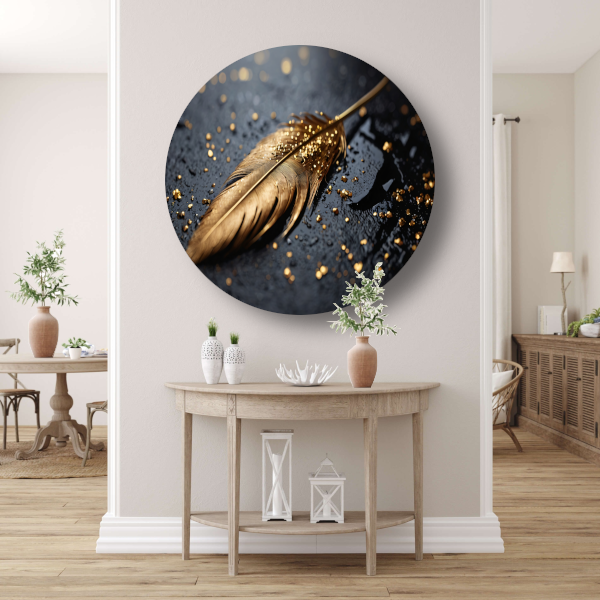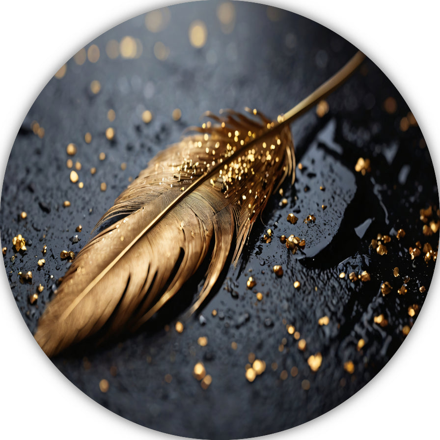 Glanzende Gouden Veer op Zwarte Ondergrond forex muurcirkel