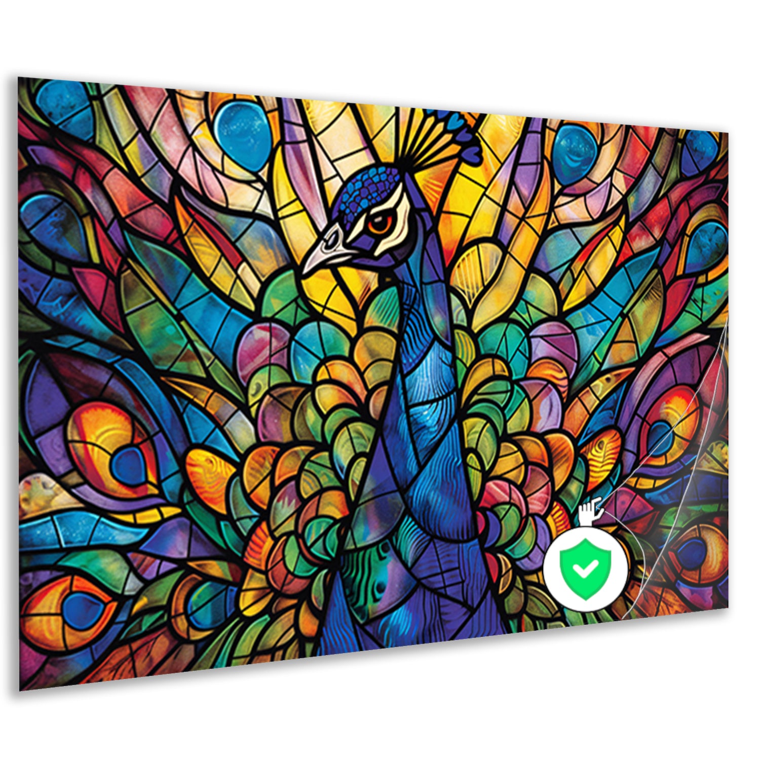 Glas-in-lood pauw in levendige kleuren poster