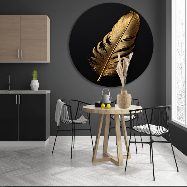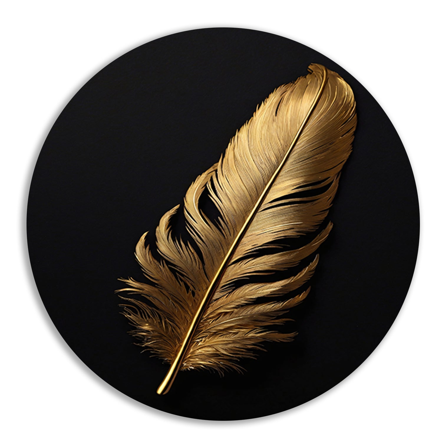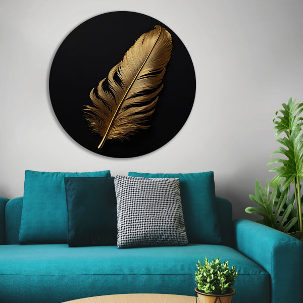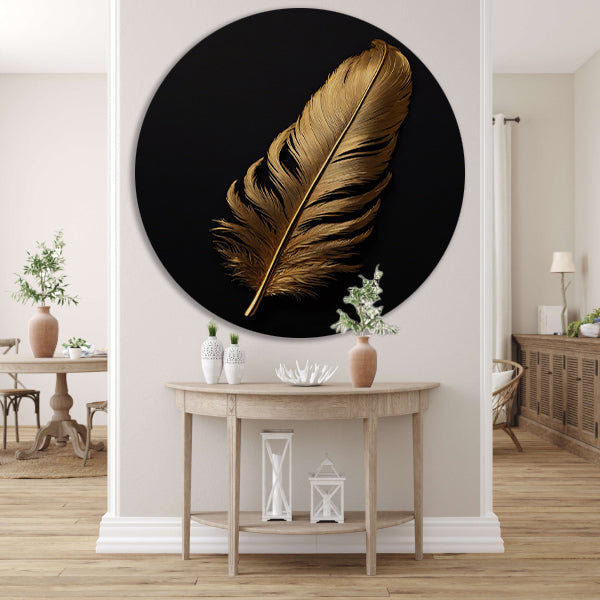 Glimmende Gouden Veer op Zwarte Achtergrond aluminium muurcirkel