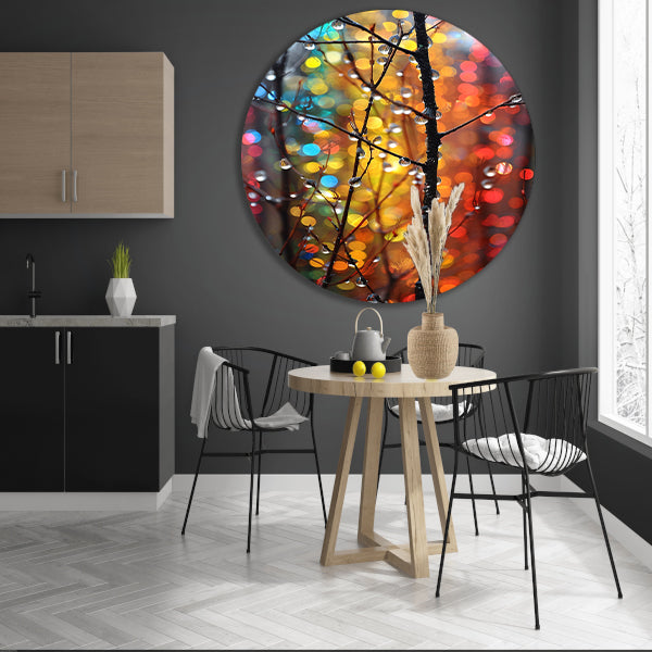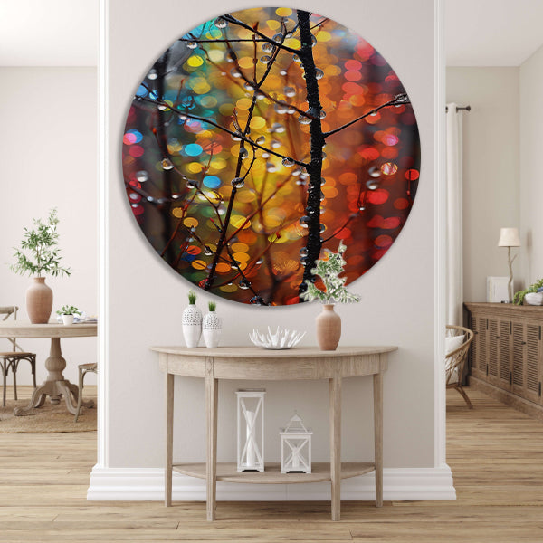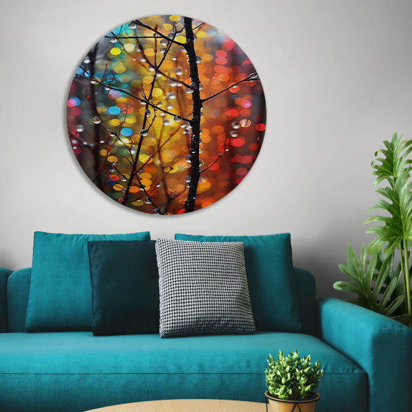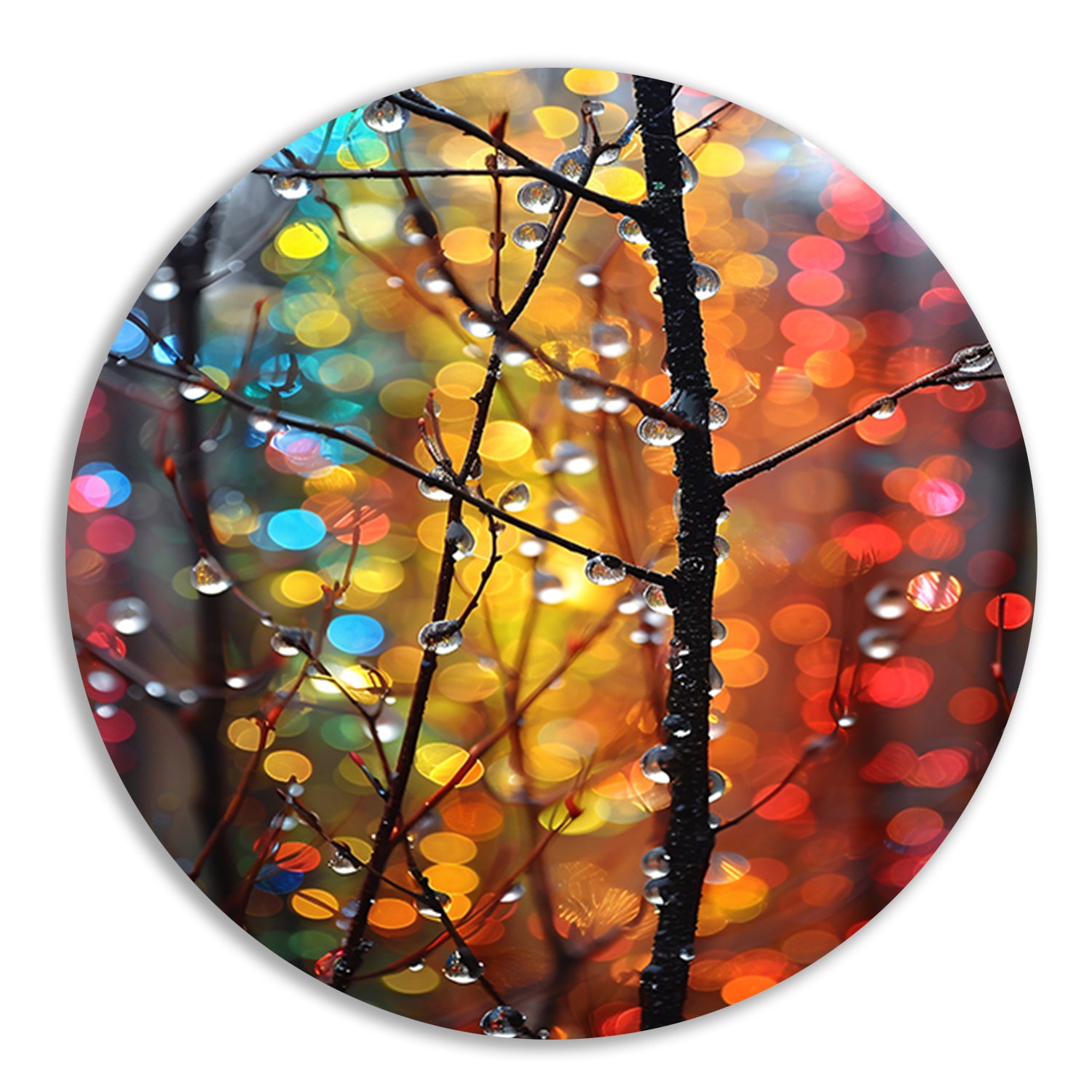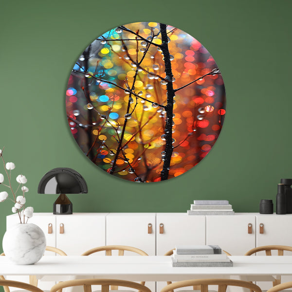 Glinsterende dauwdruppels op Kleurrijk takken aluminium muurcirkel
