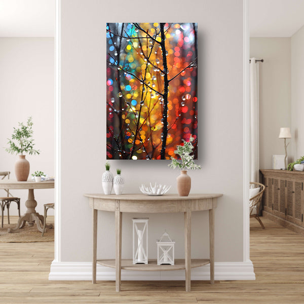 Glinsterende dauwdruppels op Kleurrijk takken poster