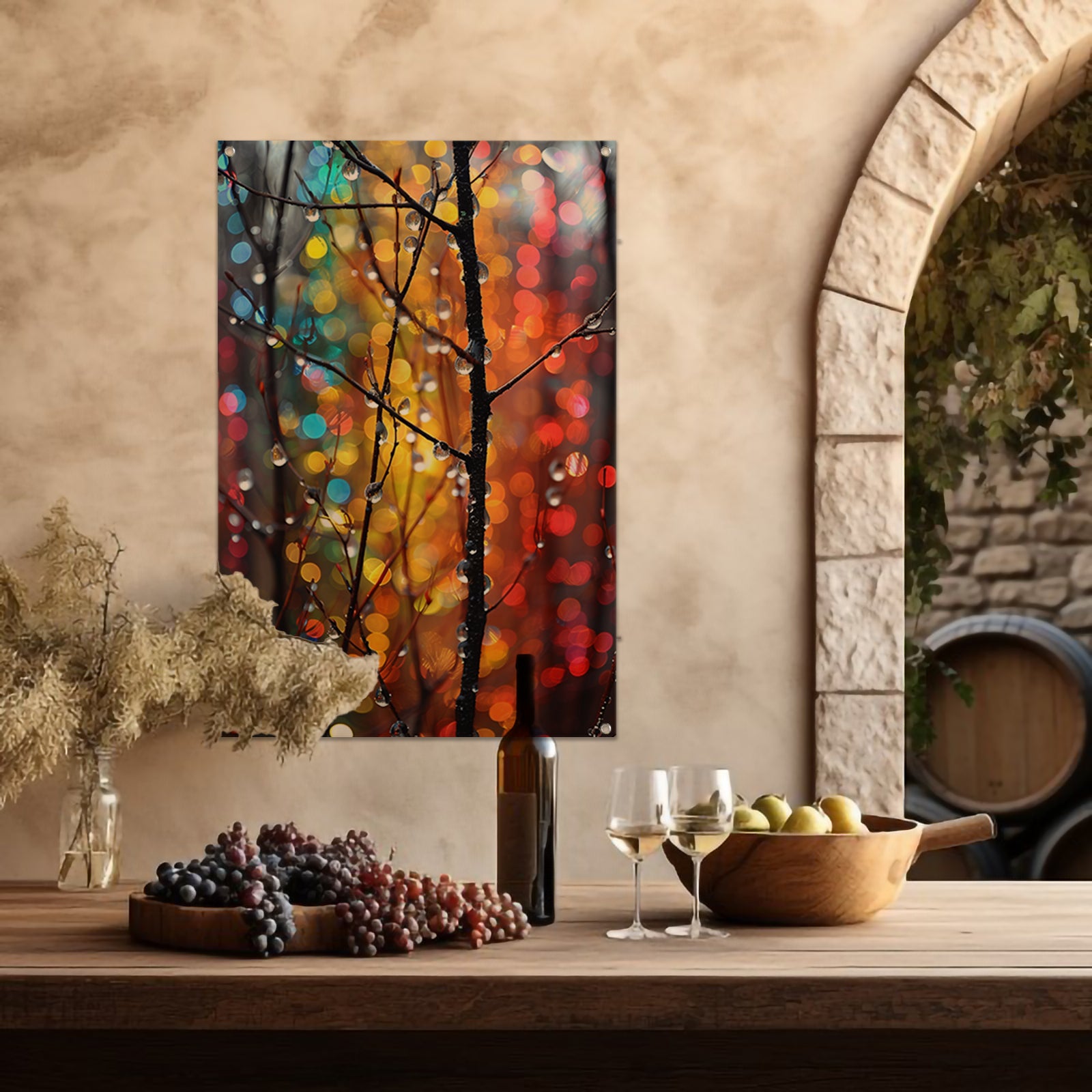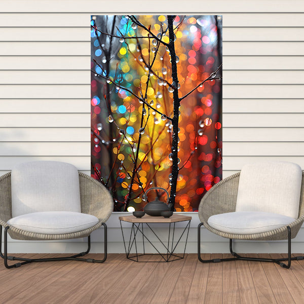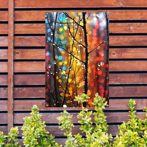 Glinsterende dauwdruppels op Kleurrijk takken tuinposter