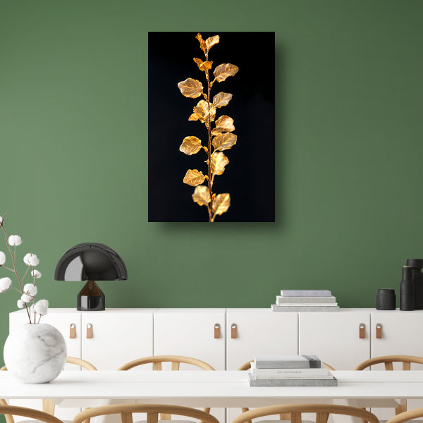 Glinsterende gouden tak met bladeren op zwarte achtergrond poster