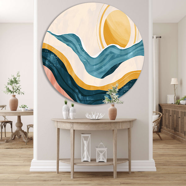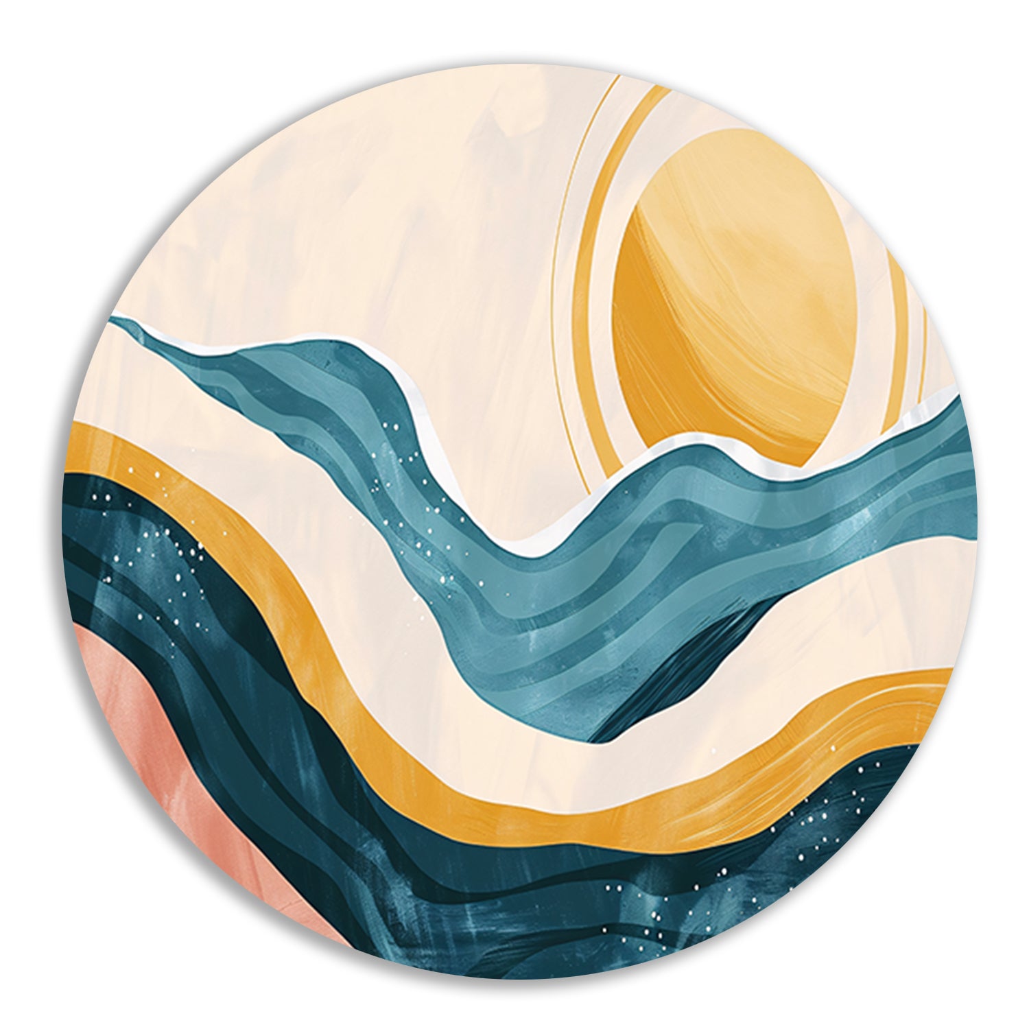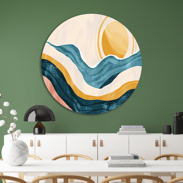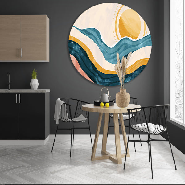 Golven en zon in abstracte vormen aluminium muurcirkel