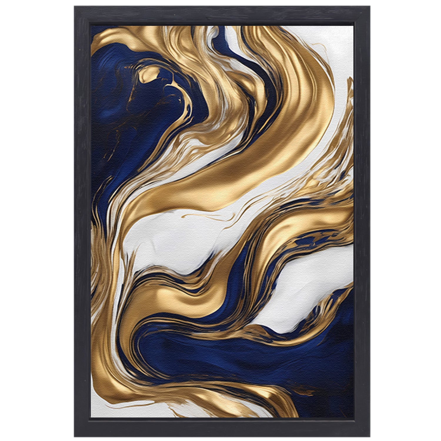 Golvend Goud en Marine Abstract Ontwerp canvas met baklijst