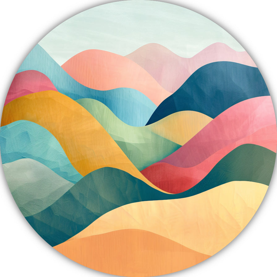 Upgrade je interieur met deze prachtige golvende abstracte kunst met kleurrijke landschappen aluminium muurcirkel en geniet van een eigentijdse en trendy uitstraling in je huis.