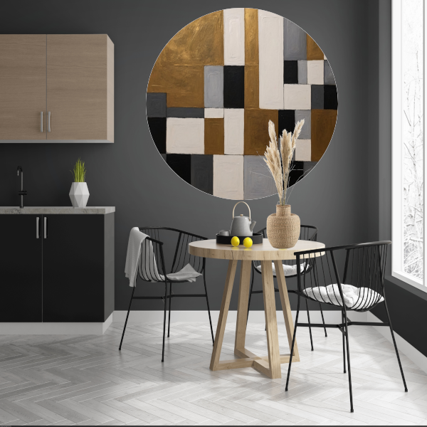 Goud en Grijs Abstracte Compositie aluminium muurcirkel