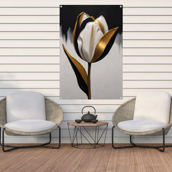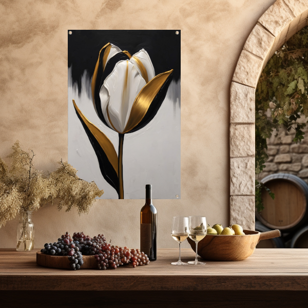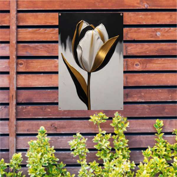 Onze tuinposters zijn UV- en waterbestendig, waardoor ze bestand zijn tegen zon en regen en hun kleuren langdurig mooi blijven. Alle tuinposters van De Muurdecoratie zijn voorzien van ringen in de hoeken, zodat je ze eenvoudig kunt ophangen. Let op: onze tuinposters worden niet met ophangsysteem geleverd.