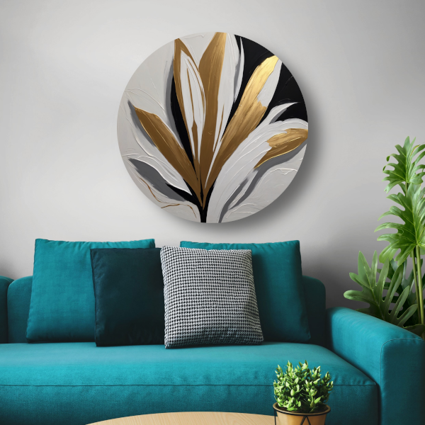 Gouden Bloesem op Abstract Wit aluminium muurcirkel