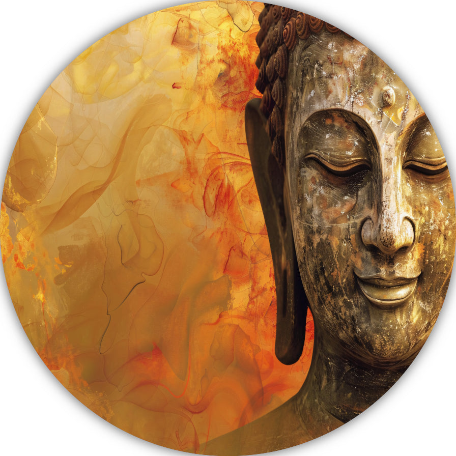 Gouden Boeddha met Harmonische Herfsttinten aluminium muurcirkel
