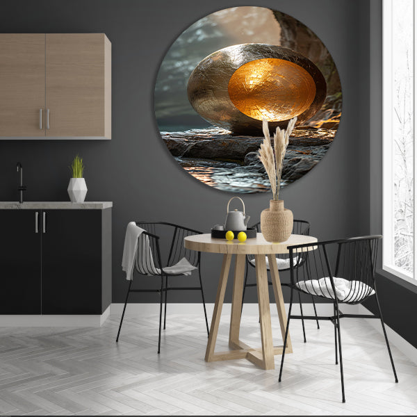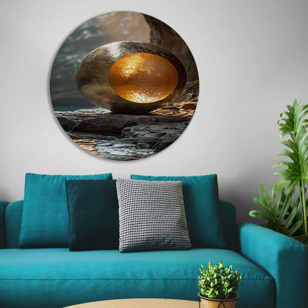 Met zijn unieke vorm en gouden afwerking is deze sculptuur een echte blikvanger die zeker de aandacht zal trekken. Voeg een vleugje luxe en elegantie toe aan je interieur met deze prachtige bolvormige sculptuur in grot aluminium muurcirkel.
