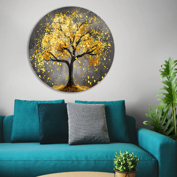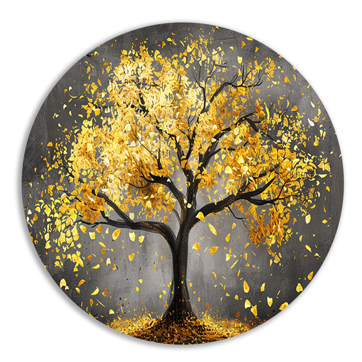 Gouden boom op donkere achtergrond aluminium muurcirkel