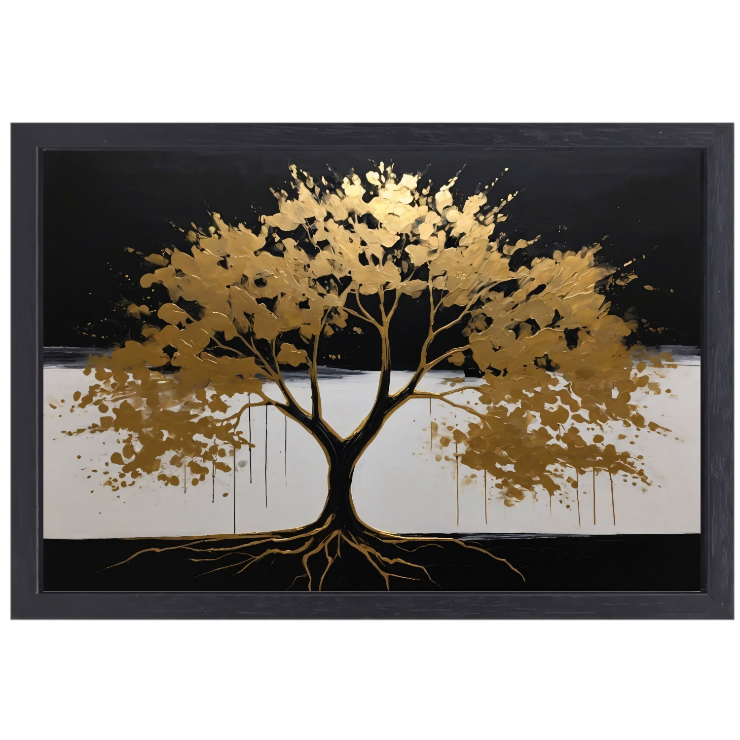 Gouden boom tegen nachtelijke hemel canvas met baklijst