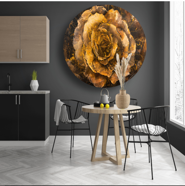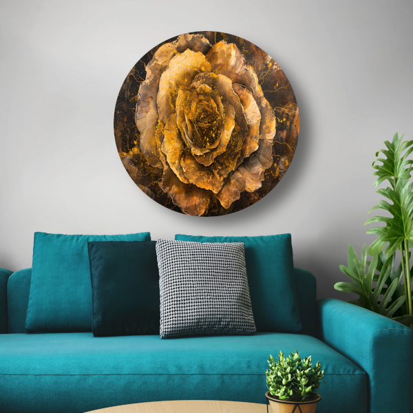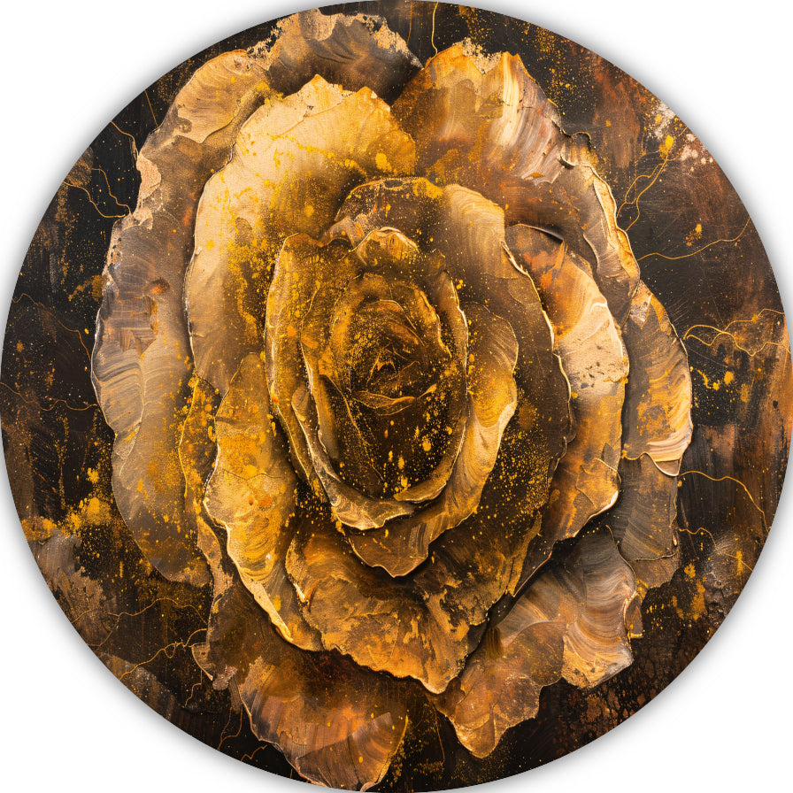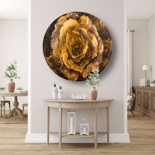 Gouden en Zwarte Abstracte Roos op Schilderij forex muurcirkel