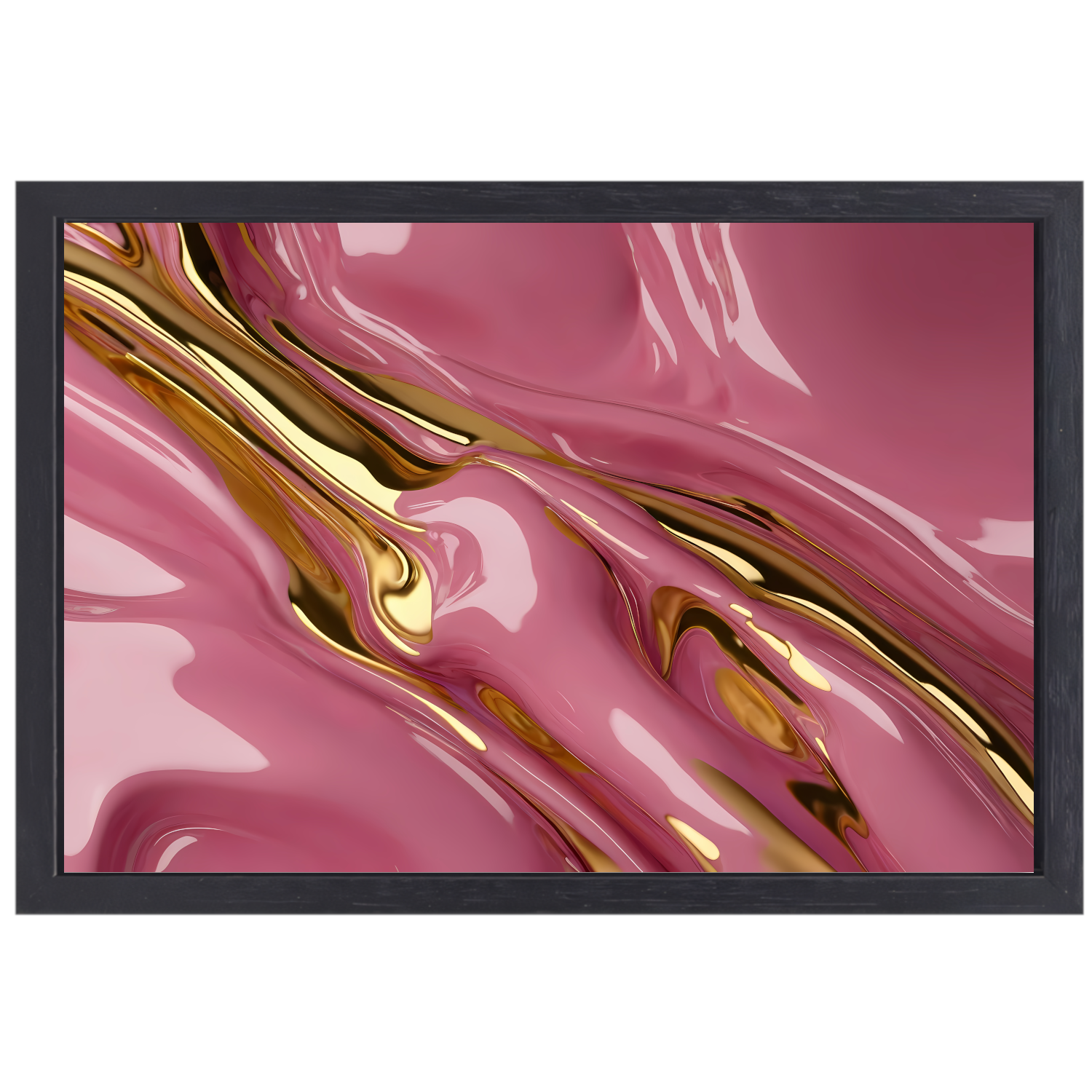 Gouden Glans over Roze Abstractie canvas met baklijst