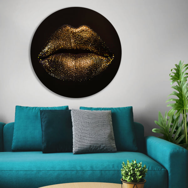 Gouden glitterlippen in close-up portret aluminium muurcirkel